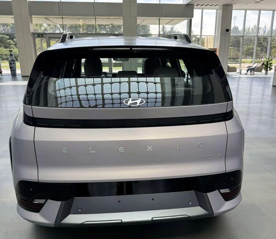 新车尾部更像是车头的翻版,同样采用了阶梯状的设计,从玻璃到下方的车身以及后包围,依次递进,后包围上还设计有对称的侵入式设计,配合上银色车身以及黑色布局点缀,带来了不错的高级感。而尾箱上的标识似乎借鉴了国产车的设计风格,现代的LOGO则放在了玻璃的下方。